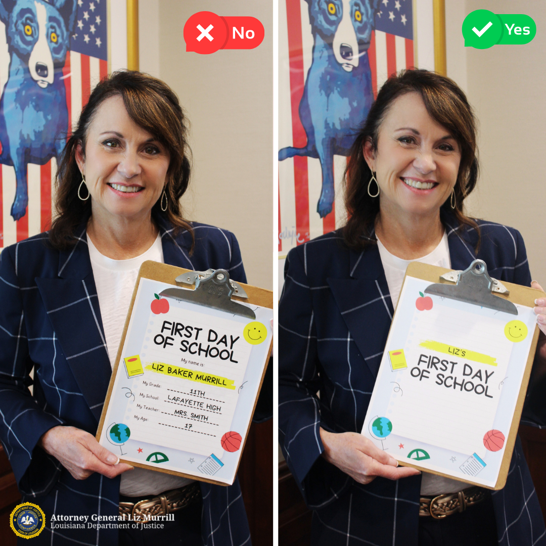 “Our most precious gifts are our children, and we all want to do everything we can to keep them safe. As a mom, I’d urge Louisiana parents to take a few simple steps to make sure their child’s personal information never gets into the wrong hands when taking those back-to-school pictures. I hope everyone has a safe and successful school year,” said Attorney General Liz Murrill.