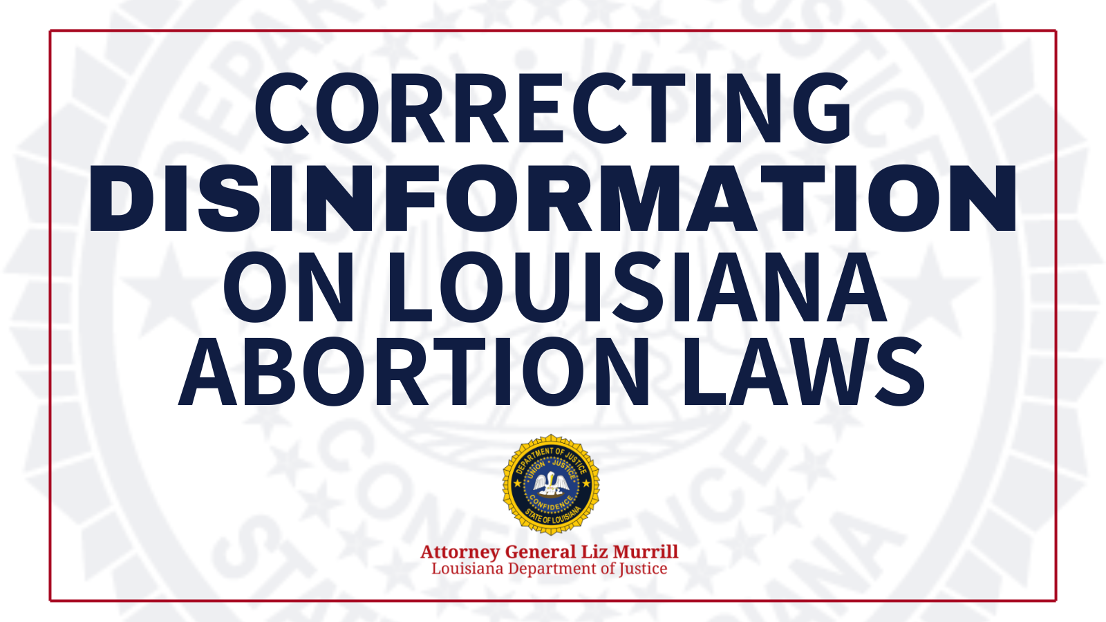 STATEMENT FROM THE ATTORNEY GENERAL CORRECTING DISINFORMATION ON LOUISIANA ABORTION LAWS
